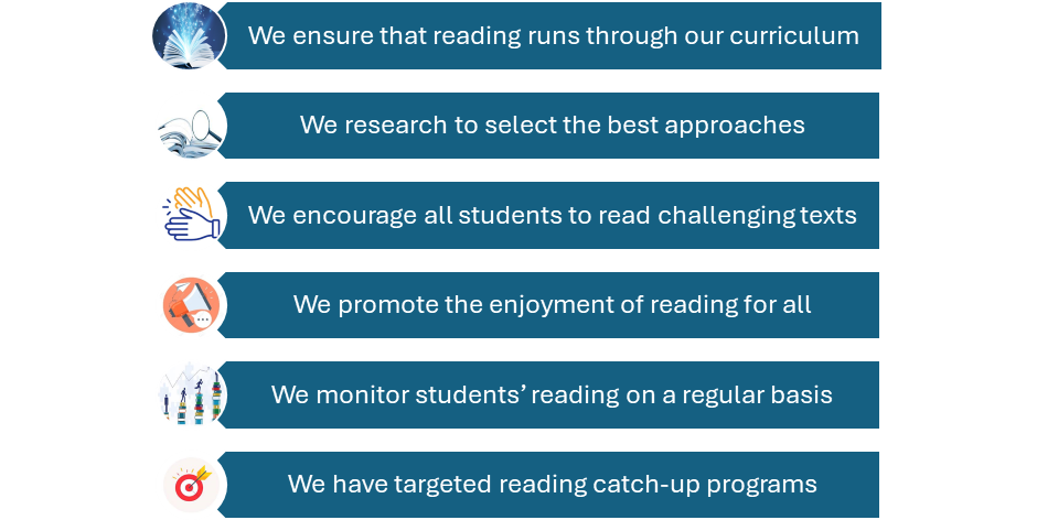 - Bespoke literacy interventions for students who need to develop their comprehension and catch-up programmes.