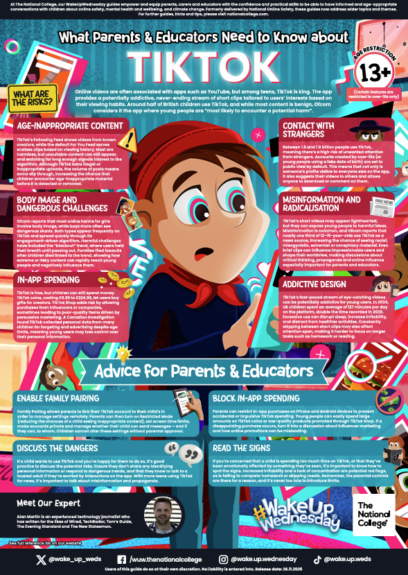 Our #WakeUpWednesday guide explores TikTok’s hidden hazards, including in-app spending, compulsive screen time and privacy concerns, offering clear advice for parents and educators. With expert insight and practical safety tips, it aims to help families ensure that TikTok use remains fun, positive and, most importantly, safe.